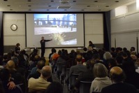 「庭のかたちが生まれるとき」では、もっとも初期に提唱された主要概念「動いている庭」が主題となり、クレマンの自邸の庭での実践報告をとおして、そもそも土地に定着していた侵略的外来種、コーカサス原産のハナウド(Heracleum Mantegazzianum)とのやりとりのなかで庭のかたちが導き出されていく様子が具体的に語られた。造園家の田瀬理夫はこの講演への応答として、庭が、庭をも含むより広い文脈──水系、地形、生態系など──に巻き込まれていることを強調し、アクロス福岡の事例報告とともに、庭にたいする姿勢をクレマンと共有することとなった。
